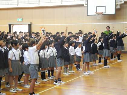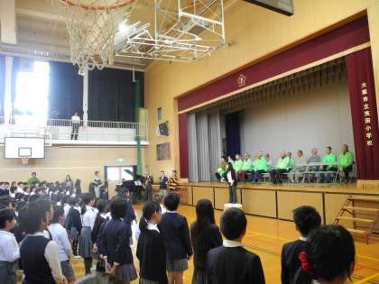 児童会代表から、お礼のあいさつをしたり、全児童が書いたお礼の手紙を渡したりしました。そして、歌「ありがとうの花」を歌いました。