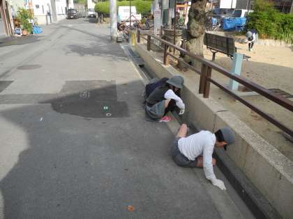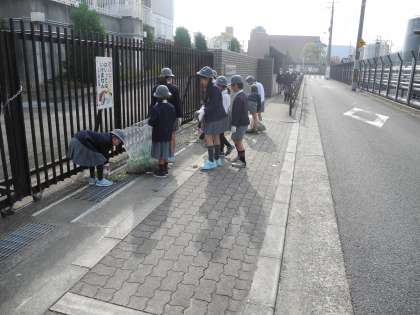 3年生は、西門から牛乳石鹸工場までの歩道や開発公園とその周辺を掃除しました。