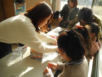 「クラフトコーナー」では、タッセルを作りました。教えていただきながら、ていねいに仕上げました。