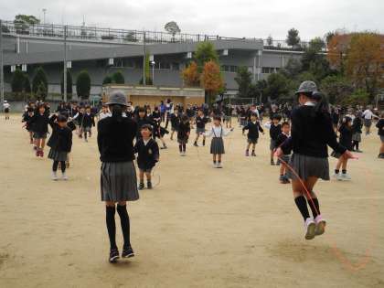 今日から「なわとび週間」が始まりました。20分休みに、全児童が運動場でなわとびをします。