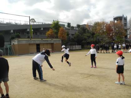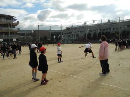 よーくなわの動きを見て、なわの中へ走りこんでいます。