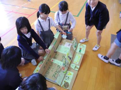 2年生は、1年生が楽しんで遊べるように、材料を工夫しておもちゃを作りました。