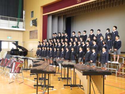 合唱「ふるさと」は、卒業式で5年生と一緒に歌います。高音がきれいに響いていました。