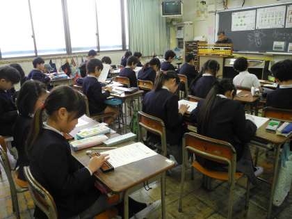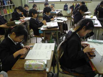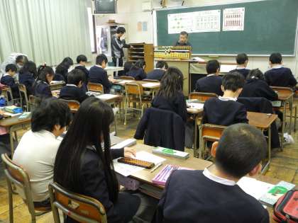 NPO法人青少年ふれあい育成団体そろばん普及会より2名の先生にそろばんを教えていただきました。