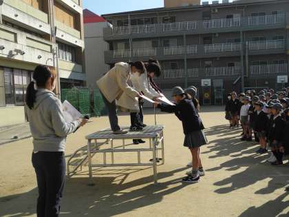 図書委員会の子どもたちから図書ボランティアさんへ感謝状を渡しました。