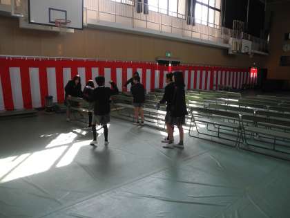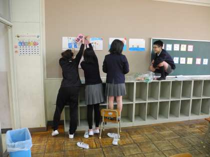 4月4日、新6年生が登校して、入学式の準備をしてくれました。新2年生は明日の歓迎の催しの練習をしました。2年生の保護者の皆さんも応援してくださいました。