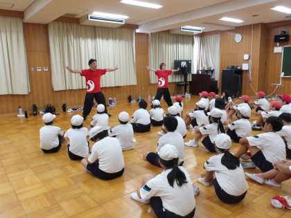 今年も大阪メチャハッピーから事務局の井上さんと踊り子リーダーのAINAさんが5年生のためにソーラン節の演舞指導に来てくれました。子どもたちは一生懸命に踊っていました。今から運動会が楽しみです。