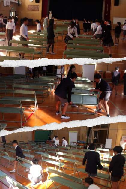 それでも、友だちと協力して長椅子を運び、てきぱきと準備してくれました。