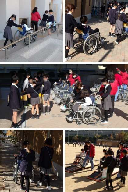自分で車いすを操作したり、段差や坂道を通る時は、友だちに介助してもらったりしながら、協力して体験しました。