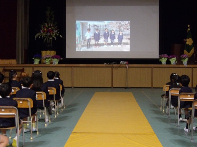 1年生は緊張した様子でしたが、2年生の学校紹介の映像をキラキラした目で見ていました。