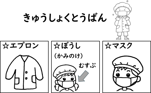 給食当番の服装チェックは、このようになっています。