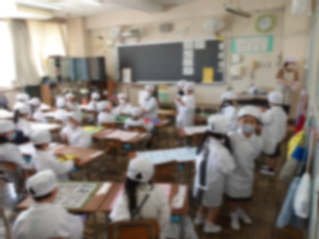 みんなで協力して給食の準備中