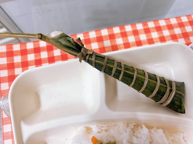 笹の葉で包まれたちまきをきれいにめくって、食べていました。