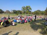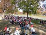 お昼ごはんは班ごとに集まって食べました。おうちの人に用意してもらったお弁当を美...