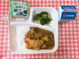 【えびフライカレーライス、ブロッコリーのサラダ、ソフト黒豆、牛乳】 「えびフ...