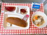 【冬野菜のカレーライス、ブロッコリーとコーンのサラダ、黄桃(カット缶)、牛乳】 ...