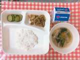 【ホイコウロー、鶏肉と野菜の中華スープ、きゅうりのピリ辛あえ、ごはん、牛乳】 ...