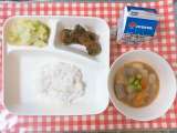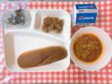 【プルコギ、とうふとわかめのスープ、きゅうりの甘酢づけ、ごはん、牛乳】 「...