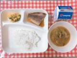 【あかうおのしょうゆだれかけ、みそ汁、グリンピースの卵とじ、ごはん、牛乳】 ...
