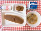 【じゃがいものミートグラタン、スープ、発酵乳、黒糖パン、牛乳】 「じゃがいも...