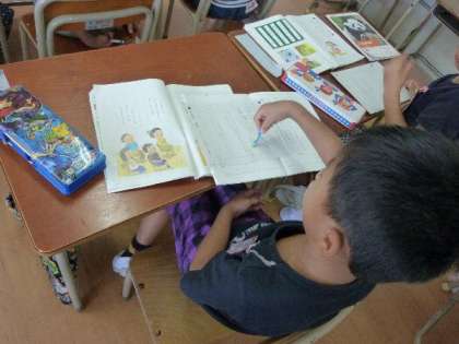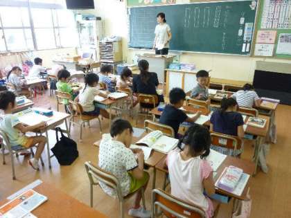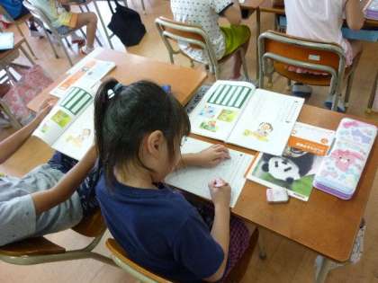 1年生の国語で、「はなしたいな ききたいな」の学習が始まりました。なつやすみの出来事を書いています。「たのしかったこと」では、海にいったり、キャンプしたり、ムシとりしたり、楽しい出来事がそろいました。これらをまとめて、人に伝えていけるように学習していきます。