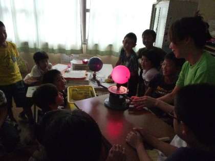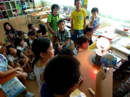 4年生の理科では「月や星」について学習しています。月のみちかけを模型を使って学習しています。子どもたちも興味深々です。