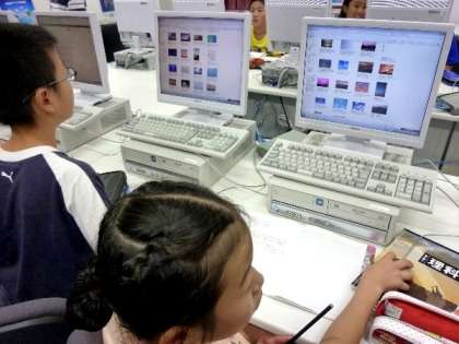 5年生が理科をパソコン室で学習しています。「空の色」について、インターネットで画像を検索して調べています。たくさんの写真があるんですね。空の色もたくさんあります。空色だけではないですね。