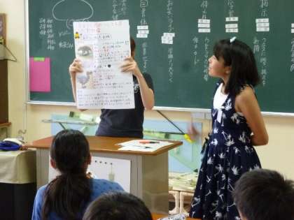 6年生で、夏休みの自由研究や作品の発表会を学級でおこなっています。「りんごあめをつくろう!」「たん生日石について」「サイホンについて」「今まで絶滅してしまった動物達」など、興味深く面白い研究が目白押し。報告を整理してまとめたり、発表したり、聞くちからがつきますよね。