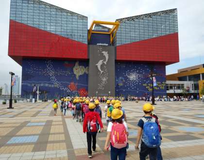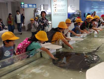 「ジンベエザメがすごかった」「サメがざらざらしていた」などの声が聞かれ、生き物に興味をもって見学している様子がたくさん見られました。