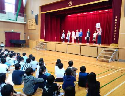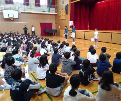 令和初の児童集会がありました。6年生の代表が全校児童に、児童会活動の各委員会紹介と、活動内容を発表しました。発表者は緊張しながらも、しっかりと、分かりやすく伝えていました。