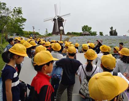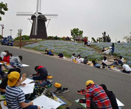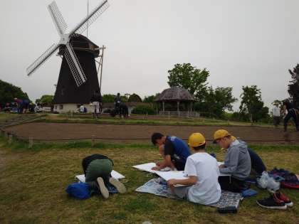 6年生が鶴見緑地公園「風車の丘」に写生に出かけました。