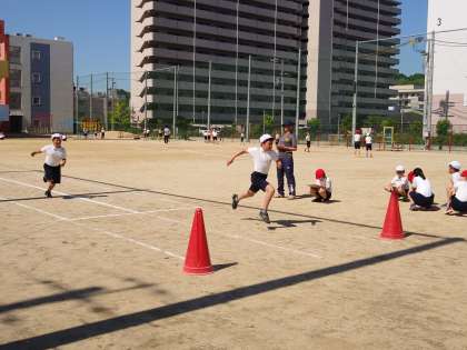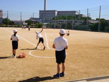 体力テストも3日目となりました。晴天の中、懸命に記録更新を狙う子どもたち。さて、1年の成長やいかに。