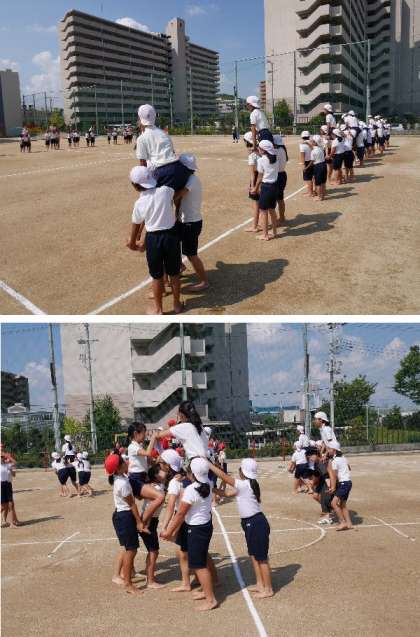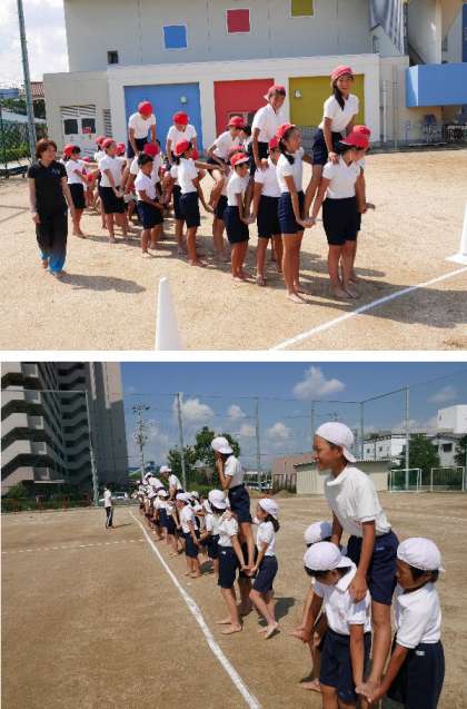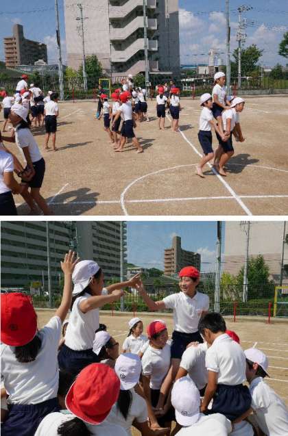 紅白に分かれての対戦、帽子をとったほうが勝ち!一騎打ちで帽子をとろうとすると、後ろから帽子をとる手が伸びてきた。勝敗はいかに?