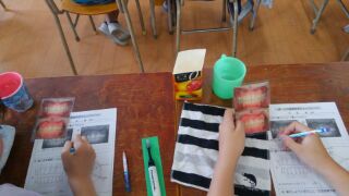 今日は「歯周病」について学習しました。歯周病はなっていても気づかないことが多いそうで、子どもたちも自分のはぐきをチェックすると・・・なんとなりかけている!とのこと。でも、今日からしっかり歯みがきををすれば「なおります」と教えていただきました。ほかにも食事では30回かむことや、お菓子のだらだら食べをやめるなど、生活を見直すいい機会になりました。ぜひ実践を続けてほしいです。