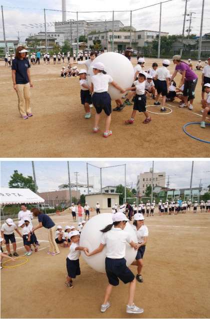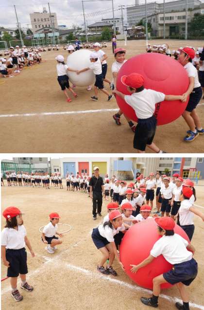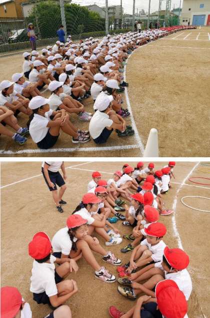 運動会全体練習の第2回目です。今日は、全員で競技をする「ジグザグるっとみんなでワッショイ!」の練習をしました。1年生は初めて練習するので少しとまどいましたが、高学年のおにいさんとお姉さんと一緒に4人のチームを作っておこなう競技なので、やさしくペアになって教えてもらって、楽しそうに協議ができましたね。