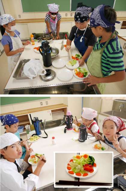 ゆで野菜サラダを協力して作ろう!5年生家庭科調理実習