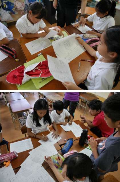 今日の委員会活動は、もちろん運動会の準備でした。集会委員会は用具準備、給食委員は決勝テープ、図書委員は得点掲示、運営委員はめあての看板を作っていました。