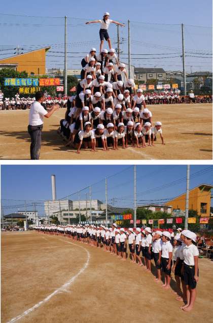 第5回運動会のおおとりは、5・6年生による「組体操×ソーラン節 〜一支要懸命 じぶんにできること〜」でした。みごとに6年生による塔、全員ピラミッドを成功させて魅せてくれました。保護者の方々から「がんばれ!」のかけ声もかかり、息をのむ場面で感動しました。ほんとうによくがんばりました。