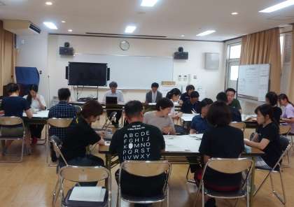 授業後は先生たちで勉強会を行いました。先生たちもよい授業ができるように頑張っています。