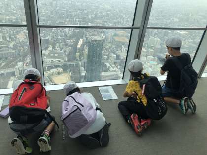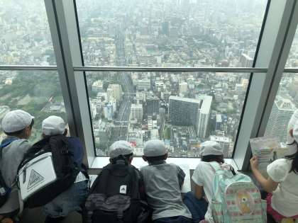 天気が心配でしたが、雨具を使うことなくハルカスに行くことができました。子どもたちは、地上300mの高さに大興奮していました。ハルカスから大阪城や四天王寺などが見えました。大阪市のようすを調べてきました。