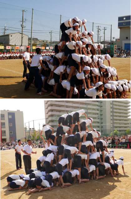最後のあいさつでは、「ひまわりの約束」をうたいながら、泣いている子をいました。組体操の後ろはなかなかみれないですが、ひとりひとりがとっても踏ん張ってがんばっています。全員の支えと協力なしにはなしえません。土台になっている人で顔もみえない人もいますが、とっても大切な部分をもくもくと役割をはたしてくれています。