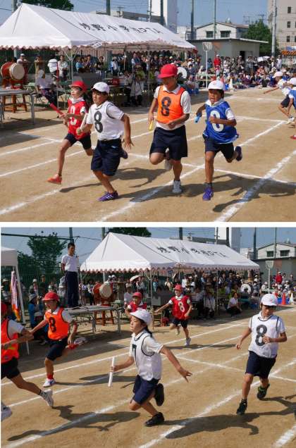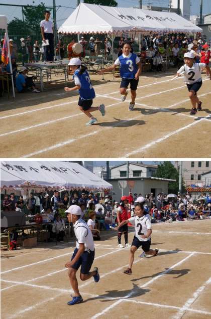 午後の部。5・6年リレー「意思走通」です。力はいっていますね。