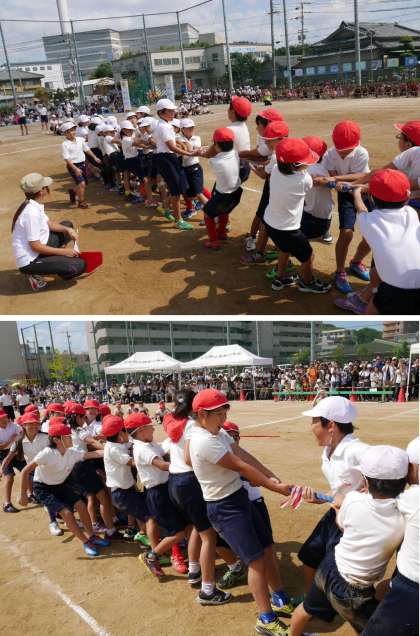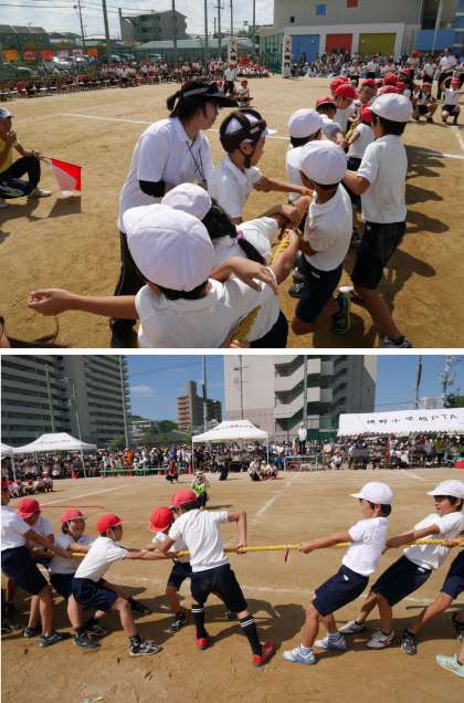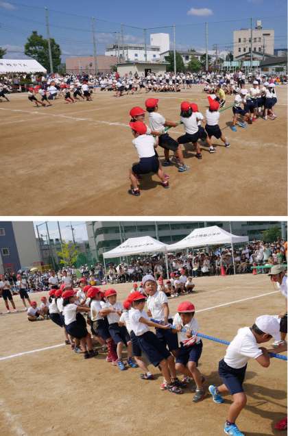 3・4年の団体競技「平成綱とり合戦」です。自分のチームが負けても、すぐに近くのチームの応援にはいます。
