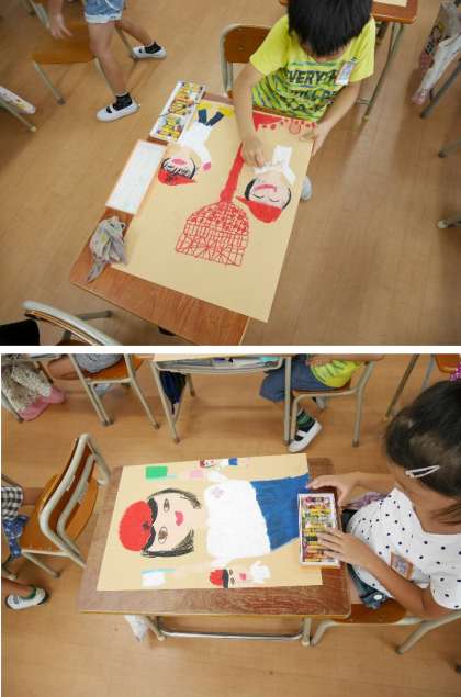 3年生は運動会の編集ビデオをみています。2年生は運動会の思いでを絵に描いています。しっかりと描けていますね。