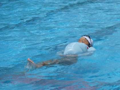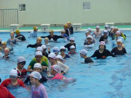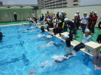 1学期最後の授業になりました。5年生と6年生は、水着のうえに普段に着ている洋服を着て水泳をおこないました。着衣して泳ぐのは、水着で泳ぐようにはいきません。いざというときのための体験実習をおこないました。