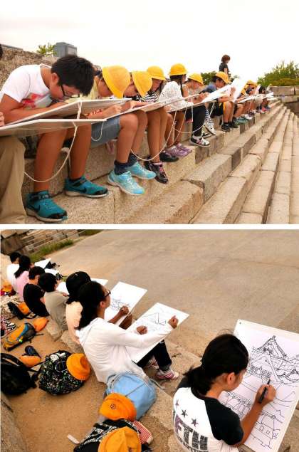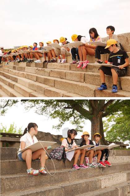 大阪城での写生会でした。天候が心配でしたが、少し蒸し暑かったけど雨にふられずに実施できました。