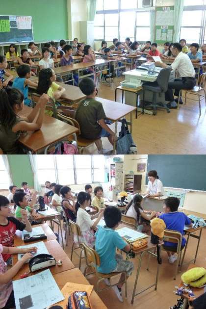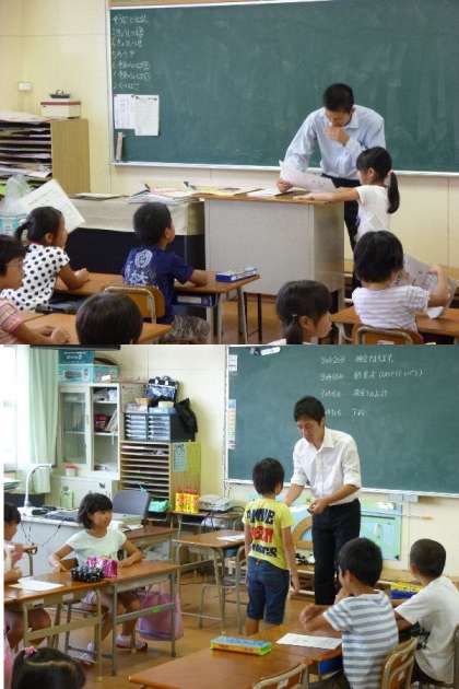 体育館での終業式のあと、各学年各学級では担任の先生から、通知表を受け取りました。学級では宿題をとじて説明を聞いたり、じっくりと先生から1学期を振り返って、よかったことわるかったことを反省して、2学期からがんばってほしいことなどをお話しました。