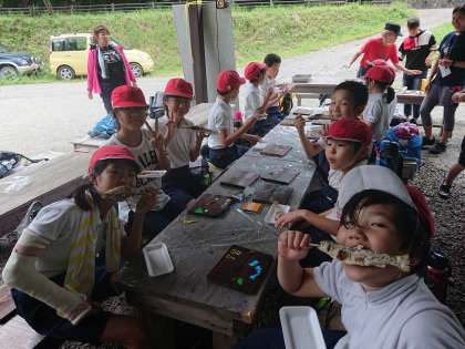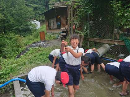 毎年、子どもたちが大はしゃぎする魚つかみ。