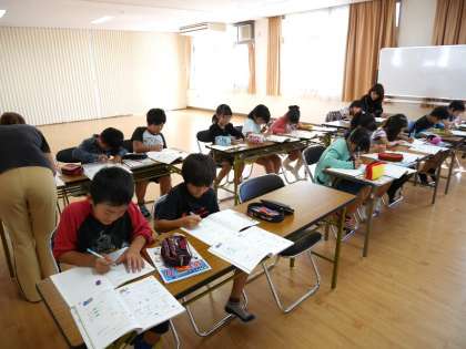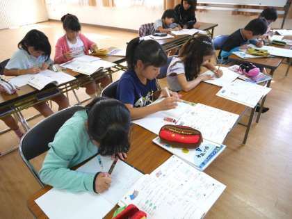 4年生の習熟度別の少人数授業の様子です。算数がだんだんむずかしくなってきているからね。ここでしっかりとわかるようにがんばりましょうね。みんな真剣ですね。