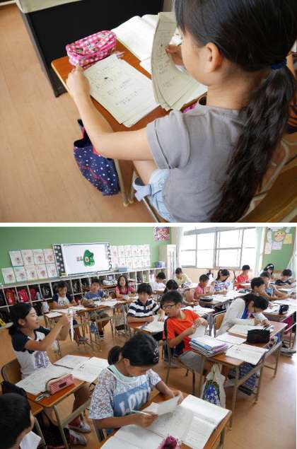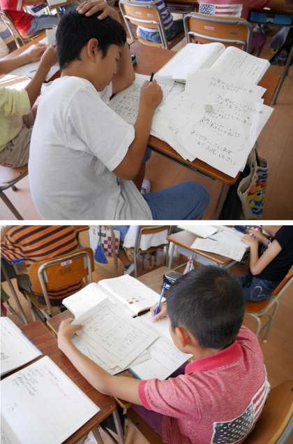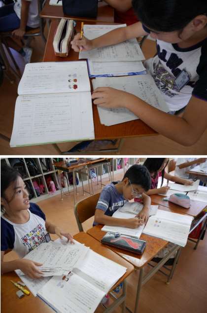 6年生が、それぞれが作ったアンケートをみんなにしてもらって、その結果をまとめています。そして最終的に「わたしの意見」を書いてハッピ用します。アンケートの集計に黙々ととりくんでいる6年生はすてきですね。